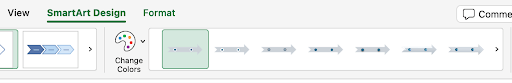 - Um Ihre Zeitleistengrafik anzupassen, klicken Sie auf die Registerkarte SmartArt-Design. Sie können die Farbpalette oder den Stil der Timeline ändern.