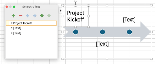 - Ein SmartArt-Textfeld erscheint neben der Zeitachsengrafik. Ersetze [Text] durch deine Ereignisse oder Aufgaben.