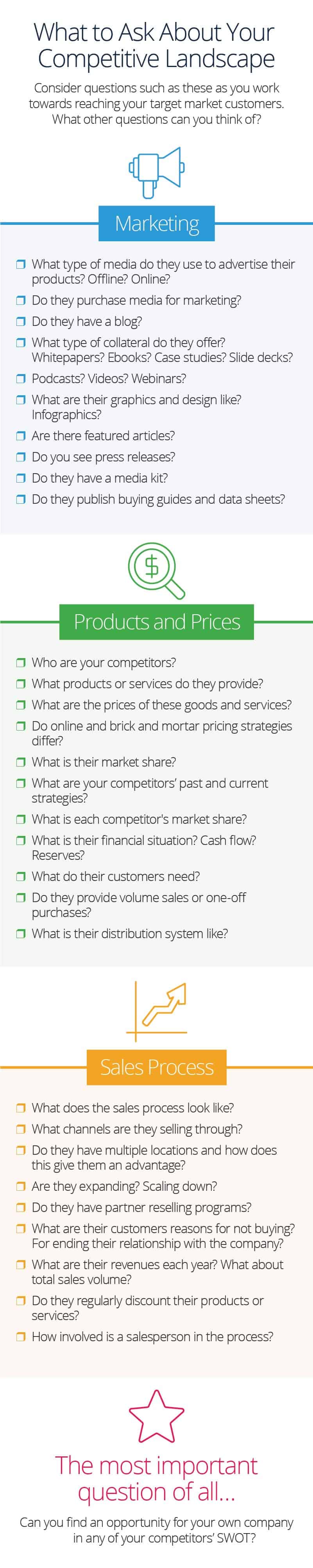 - Eine Analyse aller Stärken und Schwächen Ihrer Konkurrenz (und Ihres eigenen Unternehmens)